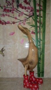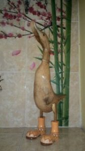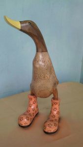 Badan Bebek difinish natural glossy sementara sepatu digambar secara manual dengan motif seperti gambar